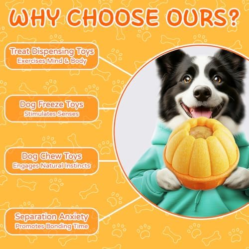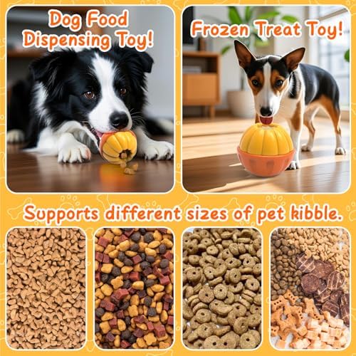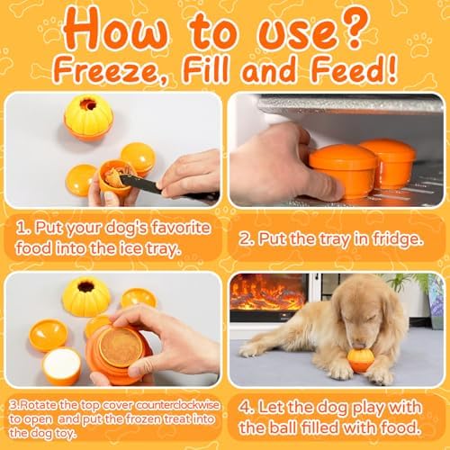 Rolling to Forage & Frozen Licking Toy : The dog can get its favorite snacks when pushing the dog puzzle toys to roll, and improve its intelligence without realizing it while playing or fill the food compartment within gredients like meat chunks, or cheese, after freezing, insert the food compartment into the toy(No need to wait for demolding) for your dog to enjoy licking