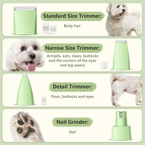 【Easy to clean and Convenice Charge】The trimming heads are detachable, allowing for easy cleaning under running water directly. The USB charging design can be charged through the mobile phone adapter, computer, mobile power supply, etc. Offering up to 2 hours of usage on a full charge, and the wireless design allows for grooming your pets wherever you prefer