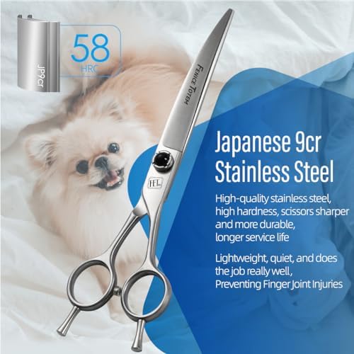 Features: This curved pet scissors are available in 7 inches and 7.5 inches with ergonomic handles, suitable for most people. Finely polished, frosted surface, fine metal texture. precise adjustable screws effectively prevents screws from loosening due to prolonged use