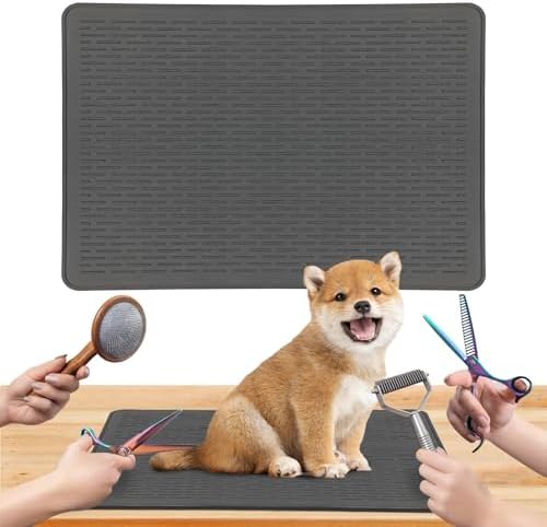 Multipurpose: This 28 x19.7 inches dog grooming table mat is spacious enough for most dog and can be used in various settings; This multipurpose mat has universal use as dog grooming table mat pad non slip, dog mat for food and water, pet food mat, cat grooming table mat, cat dog bath mat