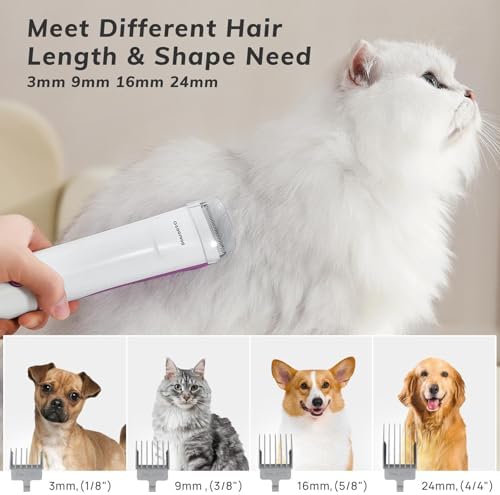 【Low Noise Design】 The pet clipper adopts a low-noise design (60 decibels) and has 3 different levels of suction to choose from, so that your pet dog will not feel scared when combing its hair