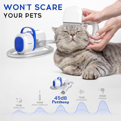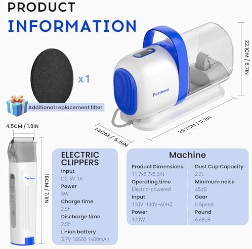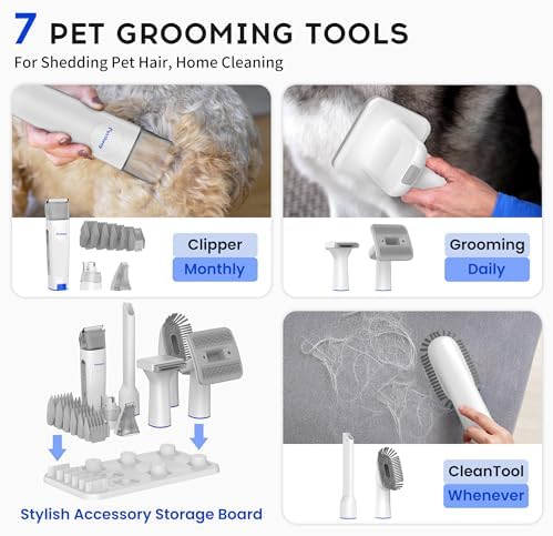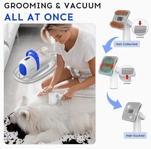 Complete 7-in-1 Grooming Kit for a Spotless Home: This comprehensive grooming set includes tools for brushing, deshedding, trimming, and more. The vacuum attachment keeps loose hair under control, while the flexible 5.5 FT hose and 8.7 FT power cable provide the reach needed for grooming in larger areas, keeping your home neat and tidy.