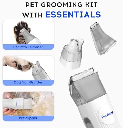 Cordless Flexibility for Grooming Anywhere: This all-in-one grooming kit includes cordless clippers, a paw trimmer, and a nail grinder that can be used independently for ultimate convenience. When combined with the vacuum feature, it offers a seamless grooming experience no matter where you are, indoors or out.