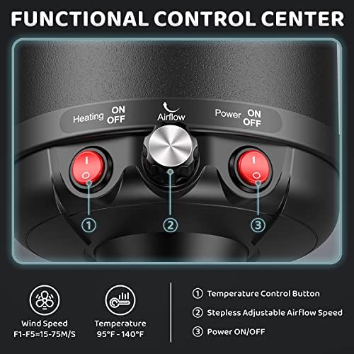Adjustable Speed & Temperature: Strong and stable motor equips this dog blow dryer with several speed and temperature levels. Maximum Wind Speed: 72m/s; Temperature Range: 95℉-135℉. The dryer will stop working immediately if the temperature is too high because it has a built-in temperature control protection system.