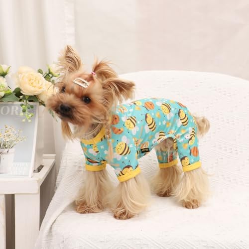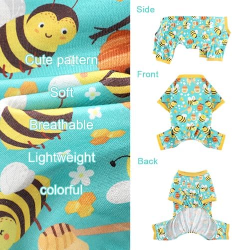 MADE FOR FALL SPRING & SUMMWER: Our pet pajamas crafted in poly-cotton blend. The fabric of these puppy clothes is SOFT, STRETCHY and BREATHABLE. The dog pajamas is warm enough for all-day wear, sleep time. Your fur baby will be wrapped in comfort with this cozy dog pjs. Cute dog clothes, dog summer clothes.