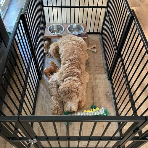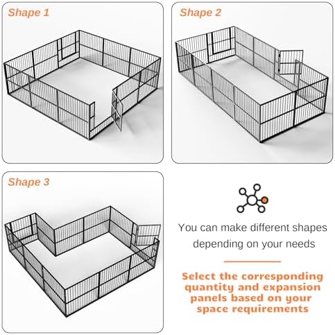 [Convenient for Pets to Enter and Exit]: The step door of the pet playpen allows for comfortable walking through, Fence doors won’t hurt your pet. Upgraded locks are designed to prevent puppies from opening and escaping on their own. For double security even if you have a naughty pet. The panel with the door can be installed upside down so that it also takes care of the small size of the dog-safe access.