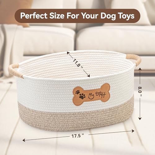 ✅ PERFECT SIZE STORAGE BASKET FOR PETS – At 17.5″ wide x 11.8″ deep x 8″ tall, this woven basket for storage is perfect for holding stuffed toys, leashes, collars, balls and any pets gifts. Get the storage baskets for organizing and keep items neatly stored and easily accessible.