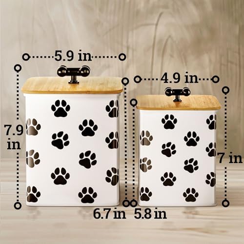 TWICE AS VERSATILE – This set has 2 different sized jars with matching designs, and each container is perfect for use as a treat tin, dog cookie jar, dog bone container, pet food jar, dog biscuit container or puppy treat container!