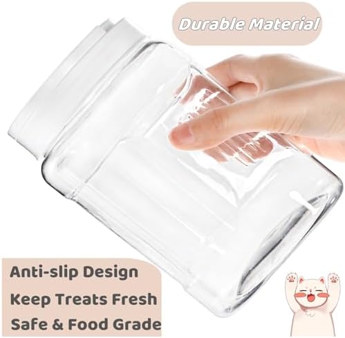 Food Grade Material: The dog treat holder is made of premium plastic which is safe and food grade. The durable jars are reusable and sturdy enough to avoid dogs or cats breaking jars with paws or teeth. The cat snack treat container is easy to clean, just wash with wet cloth.