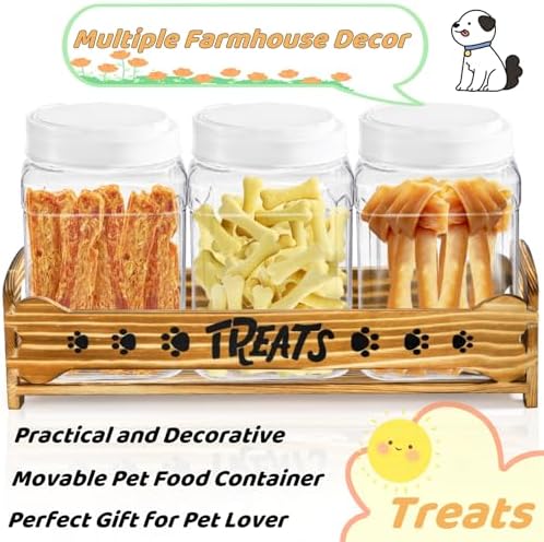 Tlence Dog Treats Container with 3 Plastic Jars