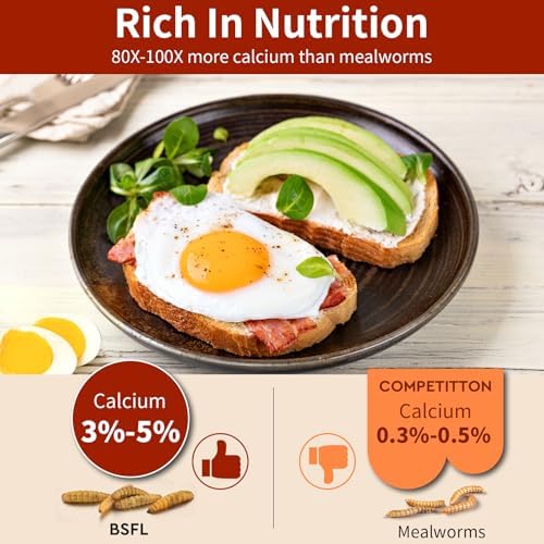 Rich in Calcium: Dried black soldier fly larvae are rich in calcium, with up to 85X more calcium than mealworms, which can help hens lay eggs with stronger eggshells, making it a favorite snack among hens. Additionally, our BSFL is easily digestible, ensuring optimal nutrient absorption for your chickens