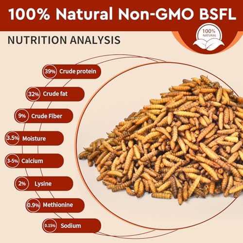Chickens love These: Treat your chickens to a delicious and nutritious snack with our Black Soldier Fly Larvae. Your backyard friends will love the taste! Your chickens will be delighted with every delicious bite, ensuring their happiness and health