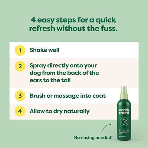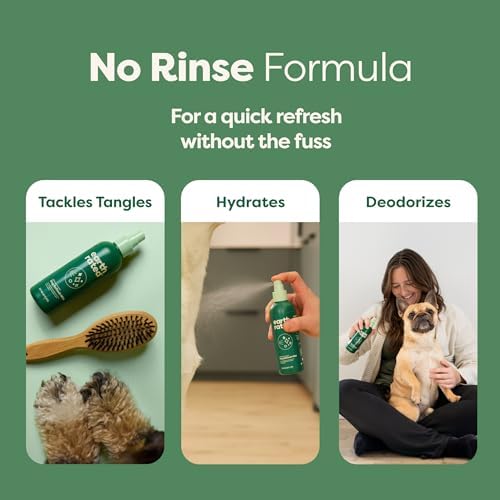 NO-RINSE, NO-FUSS: Shake well and spray directly onto your dog from the back of the ears to the tail, avoiding the face. Brush or massage into coat. Allow to dry naturally. No rinsing needed!