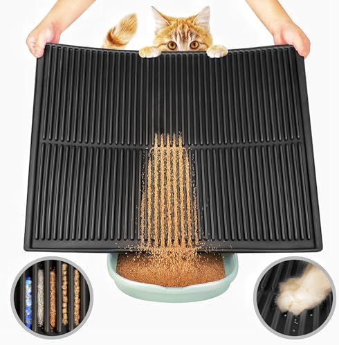 Large Size: Big 32″x21″ size provides ample coverage, ideal for large cat households or larger litter boxes, ensuring more litter containment.