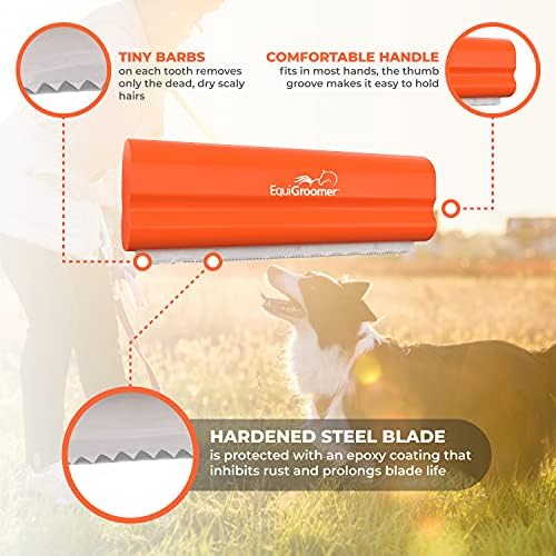 Durable, Pet-Safe Blade: Featuring a wave-style, hardened steel blade with an epoxy coating to resist rust, the EquiGroomer gently removes fur and dirt while massaging your pet’s skin. The pet-safe barbs ensure a safe and effective grooming experience.
