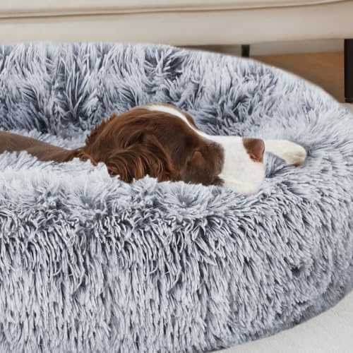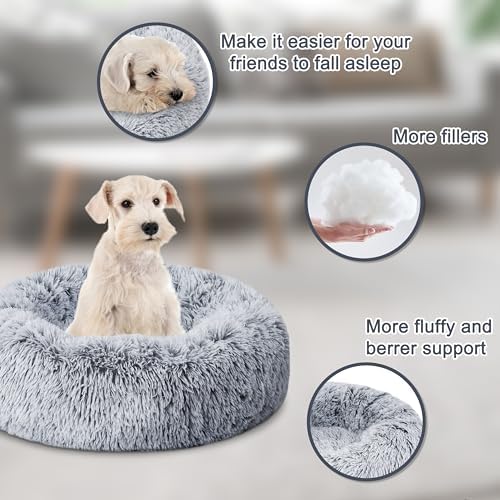 【Material】:ELSKER&HOME Calming Bed features soft, calming artificial fleece fabrics and thicker cotton fillings,High-quality fluffy dog bed will provide a warm, calming environment for your pets