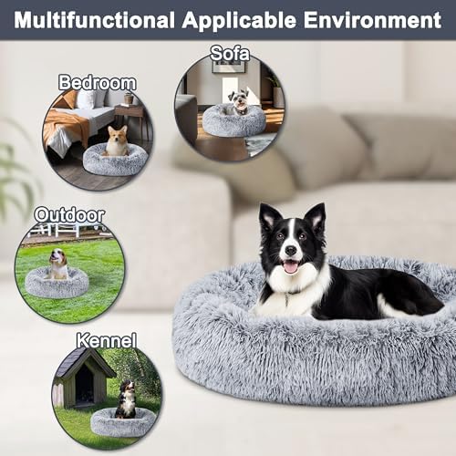 【Design】:The Donut dog bed is ideal for pets to rest on, with raised edges to provide a good support for pets, round beds and soft padding to provide a warm and reliable environment for pets to curl up and rest