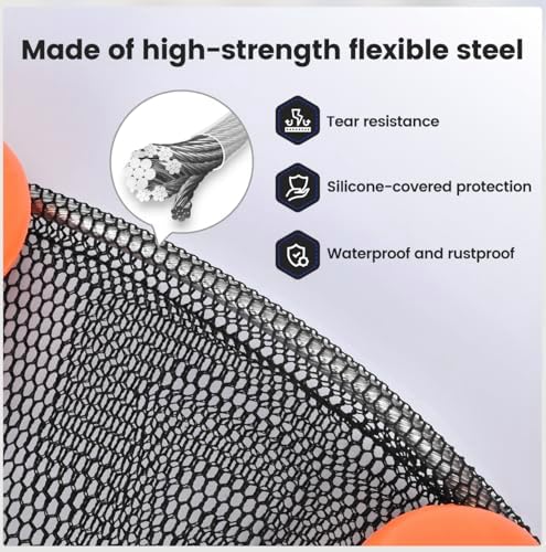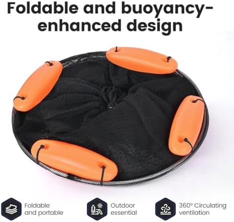 【Upgraded Frame】: Fish basket frame is made of high-quality flexible steel, significantly enhancing its stability and tear resistance. The frame is coated with a silicone protective layer, offering better corrosion resistance and rust prevention. With the addition of an orange floating design on top, it helps maintain the vitality of your catch more effectively