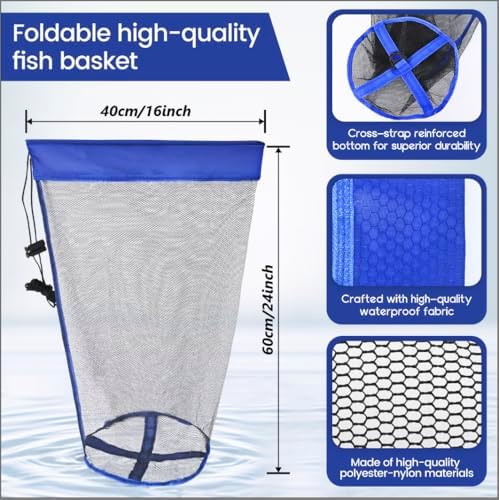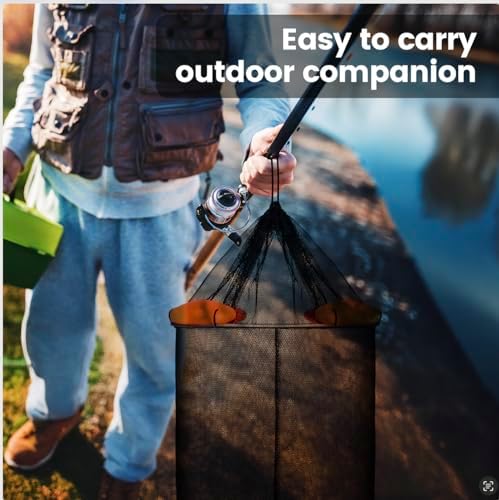 【Foldable-Portable for Outdoor Use】: Fishing basket for caught fish are designed for outdoor use, making them perfect for activities that require portability. They are easy to carry and quickly unfold. The drawstring design effectively prevents your catch from escaping. In addition, the extra multi-functional fish basket we’ve included is ideal for a wide range of outdoor activities such as fishing trips, camping, and adventures