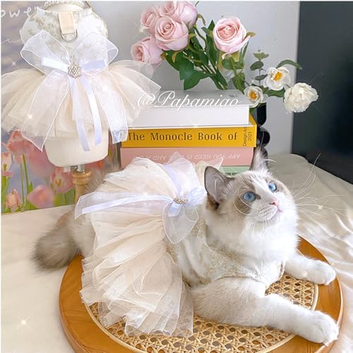 【Exquisite Design】: Cat dress for cat features a princess style and fluffy tutu, matched with the pear decor and bow knot, make the puppy dress be a great choice for various occasions