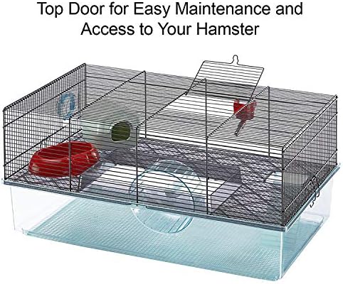 Easy Maintenance Hamster Cage: Top panel features an access door & entire wire portion & middle plastic section of the cage disconnects from the transparent base for easy cleaning access