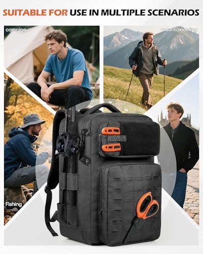 [COMFORTABLE BACKPACKING EXPERIENCE AND MULTIFUNCTIONAL DESIGN] This backpack has thickened and upgraded shoulder straps and back panel according to the angler’s condition, and the shoulder straps also have a unique ergonomic design, which can make you have a better backpacking experience.