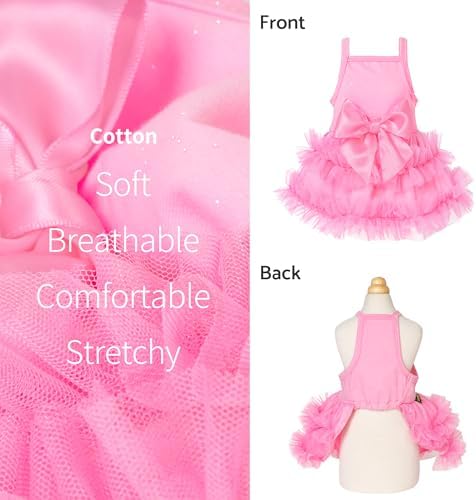 Crafted in 100% cotton in soft top and 100% polyester in tulle, dog princess dress offers a soft, lightweight feel for all day comfort. Breathable material makes it perfect for various seasons, including spring, summer, and fall.