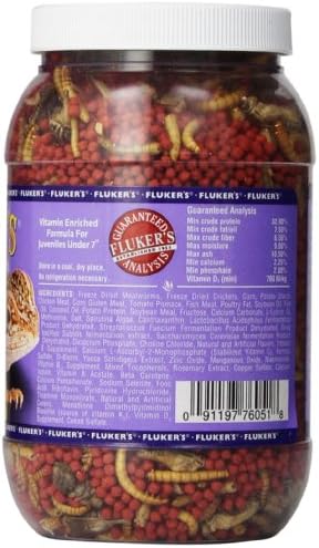 Fluker’s Juvenile Bearded Dragon Buffet Blend is a combination of vitamin fortified pellets, freeze dried crickets, and freeze dried mealworms. Provides instant nutritional variety for your bearded.