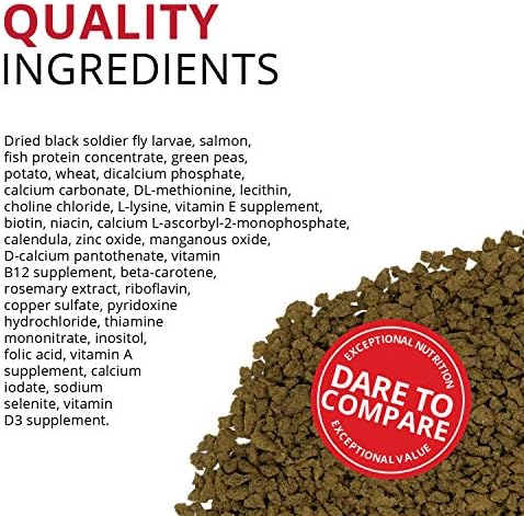 High in multiple proteins like whole salmon – rich in Omega 3 and 6 for healthy skin, scales and fins