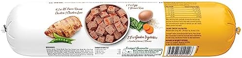 Gently steamed with fresh natural chicken, vitamin-rich peas & carrots and high fiber brown rice, this recipe comes in a slice and serve roll. This is the next best thing to a homemade meal that is healthy for your dog. At Freshpet®, we believe dogs and cats deserve real, nourishing food, like the fresh food we enjoy. The magic begins in our kitchens, where every meal is freshly made. We start with simple, healthy ingredients, which we gently steam so they retain their natural goodness and provide the essential nutrients dogs and cats need to lead their happiest, most tail-wagging lives. See the difference Freshpet has made to pets’ lives and learn more about us at freshpet.com.
