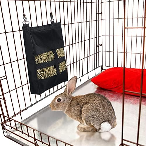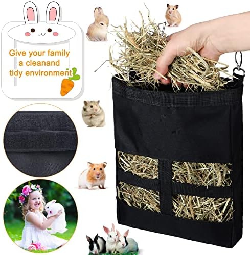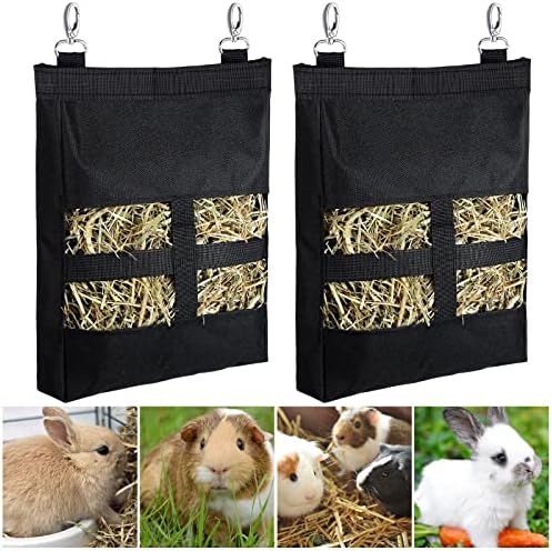 Easy to hang: the guinea pig hay feeder bag is equipped with 2 metal hooks, which can be attached to most wire cage or be hung on a rope, simple and convenient to use, keeping the bag clean and organized