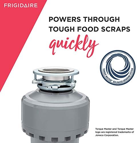 Torque Master Powerful Grinding System: Instant, high speed-torque powers through tough scraps and food waste. Your disposer’s system works to balance the speed and force of the motor and cutting components. Quickly grinds coffee grounds, produce scraps, small bones and other food waste with minimized noise and vibrations.