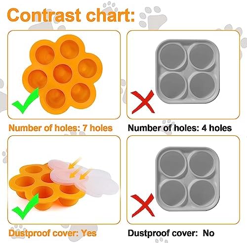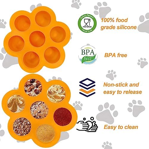 【Make multiple flavors of treats】: This silicone dog treat mold has 7 holes, you can make a week’s worth of dog treats at once, you can freeze homemade dog treats for Pupsicle with your dog’s favorite treats, just fill the dog treat mold with your pup’s favorite food or treats, put it in the freezer, and in a few hours you’ll have 7 different delicious treats ready to go! !