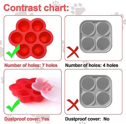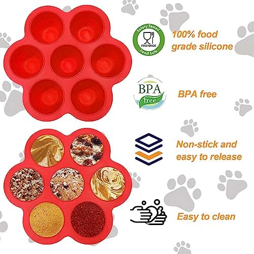 【Make multiple flavors of treats】: This silicone dog treat mold has 7 holes, you can make a week’s worth of dog treats at once, you can freeze homemade dog treats with your dog’s favorite treats, just fill the dog treat mold with your pup’s favorite food or treats, put it in the freezer, and in a few hours you’ll have 7 different delicious treats ready to go! !