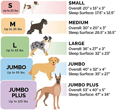 Size Jumbo: 44″ x 35″ x 10″ (Sleep Surface: 38″ x 29″)