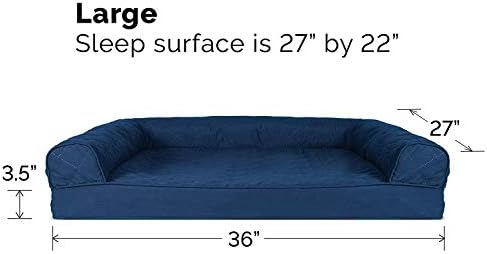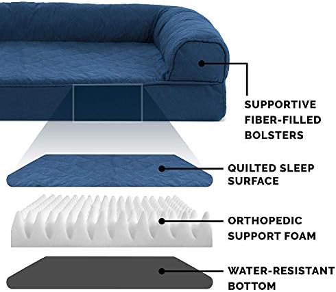 Finally, a solution for your arthritic pet’s pain! The Furhaven Quilted Sofa-Style Dog Bed has a smooth surface providing your pet comfort while the orthopedic (egg crate) foam base supports your dog’s joints and pressure points. The Jumbo Plus option, for larger breeds, features solid slab orthopedic foam for greater support and comfort. The sofa bed has three walls to give your pup a variety of positions to lay in while remaining comfortable. Your best friend deserves a good night’s rest and now, it’s possible. With its very own orthopedic pet bed, your loved one will have maximum comfort for a great night’s rest. Any position will do on this sofa bed! The squishy bolsters on three sides provide comfort for your pup to lay down in a variety of ways while always being provided the support they need. For example, your dog can lay on their tummy and use one of the bolsters as a pillow for a cozy night of sweet dreams. This luxurious orthopedic dog couch provides a cozy spot for your companion to snuggle up in, leaving your favorite spot on the couch all for you! No more sharing the bed or finding dog hair on the couch. With soft side walls and a snuggly pinsonic quilted surface your pet won’t need to count sheep to drift into a deep slumber on this orthopedic dog couch. Easy to clean. Cover care: Remove from core before washing (see seam label for fabric care instructions). Foam care: Spot clean with mild soap; rinse. Blot, then air dry. Do not wring. Not for unsupervised use by animals with chewing behaviors.
