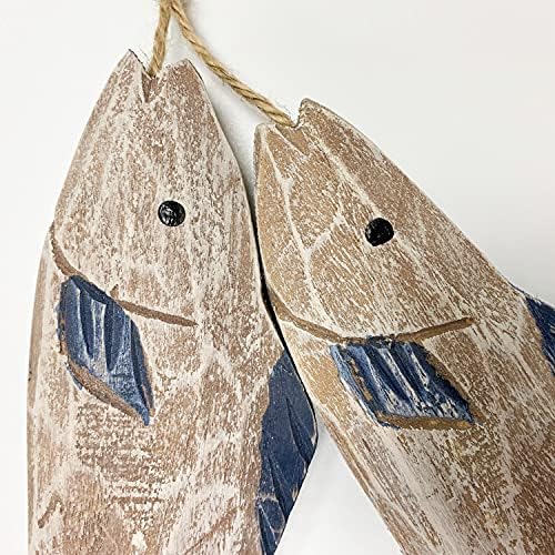 Hanging Fish Wall Ornament-Comes with 2 wooden fish with a hanging rope. It’s easy to hang the fish wall art anywhere you like for nautical themed room, wall ,door, window. Brighten up your home with this rustic wooden fish wall art ornament.