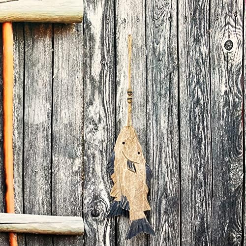 Hanging wood fish, each piece will be unique and vary slightly due to the handmade nature of the construction. Rustic wood fish decor also make it a welcome addition.