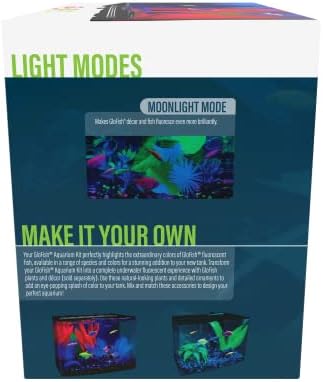 Brighten up your room with the GloFish 3-Gallon Aquarium Kit. This 3 Gallon Aquarium kit is large enough to house multiple dazzling GloFish. It includes a Whisper filter that stays quiet while keeping your tank clean and your fish healthy. This kit comes with unique blue and white LED aquarium lights that will give both your GloFish and tropical fish an exciting vibrant and fluorescent look. Turn out all the lights in your room to create an even more visually stunning experience. This Glofish aquarium kit would be ideal for low-level lighting environments. You can even use it as a nightlight in a bedroom. This kit is wonderful for beginner fish owners and veterans alike and also includes a convenient, easy-to-read aquarium kit set-up guide. The Aquarium Kit includes Cover, Frame, LEDs, Internal Filter, Medium Filter Cartridge and TetraCare registration. Bring the underwater world to your home with this Glofish aquarium kit.