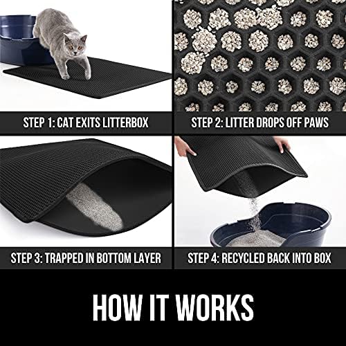 PERFECT SIZE: mat measures 15×24, perfect for small litter boxes; ensure mat is flat before use; if creased, lay flat for at least 24 hours and place a weight, such as a book, to allow creases to soften; For more stubborn folds, you may flip over and roll mat in opposite direction