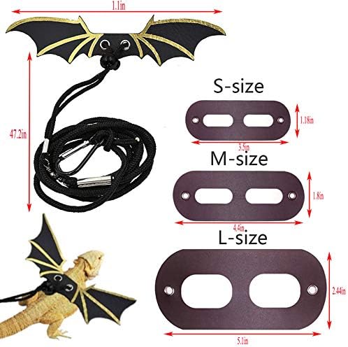 PREMIUM LEATHER: Made from high-quality leather and nylon material, this harness leash is light, soft and comfortable. Skin-friendly for your small pet animals and make them more comfortable with this bat wings harness.COOL FASHION BAT WINGS: Reptile harness leash with cool bat wings, cute and vivid, providing your small pet animals with the more eye-catching look when walking outdoors or on special festivals and theme parties.HANDS-FREE CARABINER: There is carabiner with the lizard harness leash, you can attach the harness to your belt and release your hands, convenient for you to walk outdoors and interact with your small pets.
