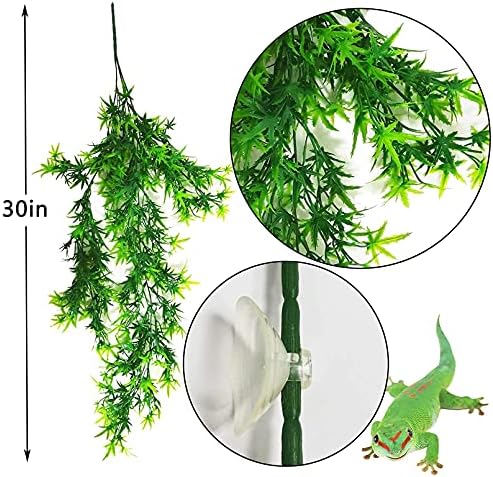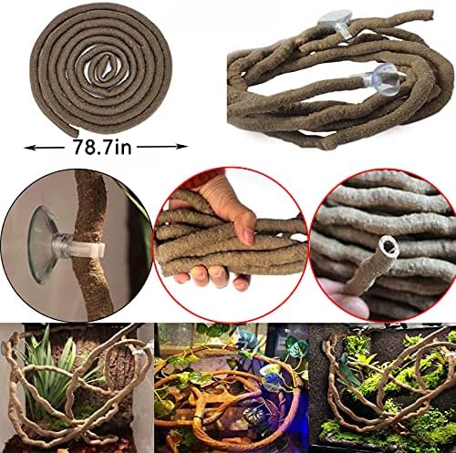 【Various Reptile Plant Decorations】The bendable jungle climber vine has a rough surface, and the reptiles are easy to climb on, with suction cups, which are easy to adjust and fix on the water tank. Artificial plant vines have many shoots that fall off the main vine and blend well with other plants in the tank to create a natural habitat for your pet.