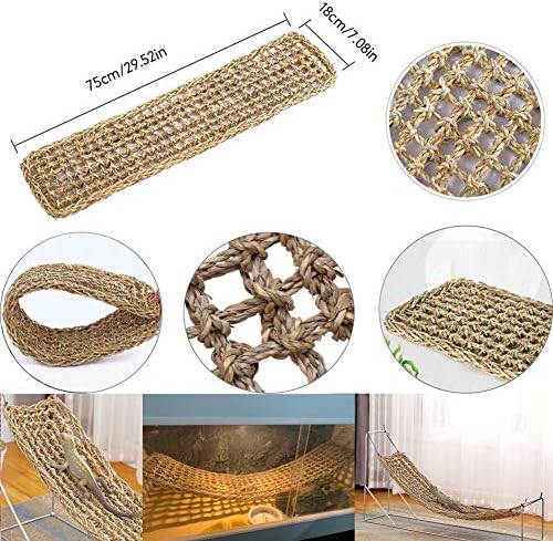 MATERIAL SAFETY : There are two kinds of hammocks,a hammock bed is made of 100% natural seagrass. All by hand woven, seagrass fiber material, soft but very sturdy and durable. Comfortable and climbable lounger that all pet reptiles will enjoys our juvenile bearded dragon accessories. The other is by Made of breathable soft nylon material, strong and sturdy