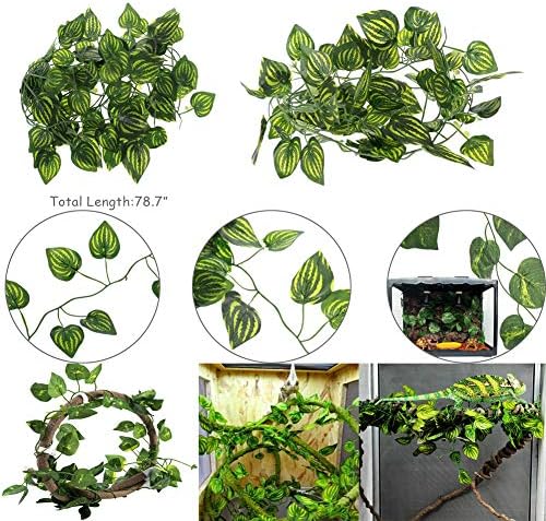 BENDABLE JUNGLE VINES : Artificial bendable rattan vine with natural feel and appearance; Reptile jungle vines are water proof, give your pet a better experience. The artificial leaves are PP laminated, with realistic appearance and not easy to discolor or fade; Provide a wonderful and comfortable habitat, simple designs and varied shapes of climbing vines for reptiles , make your beardie feel at home