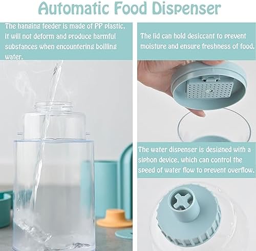 【Two Ways To Use】Automatic rabbit feeder can be either placed on the ground or hung on the cage. Knob hanging cage design, just snap the swivel buckle onto the cage and you can hang it securely on the cage. And you can refill foods and water from the outside, very convenience.