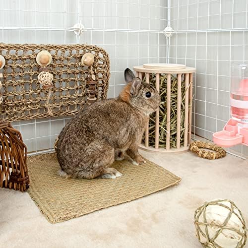 Less Wasted & Big Volume Hay Manager – 2 in 1 functional Rabbit Timothy Hay Feeder & Pellets Bottom Tray