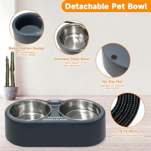 Safety Stainless Steel Bowl: Pet heated bowl is made of BPA free pp plastic with high quality stainless steel bowl which is anti-corrosion and heat resistant, it is safe for your pets to drink water and eat food. With anti-chew cord, you need not worry about the wire is bite by your pets. And every product has passed strict testing before leaving the factory.