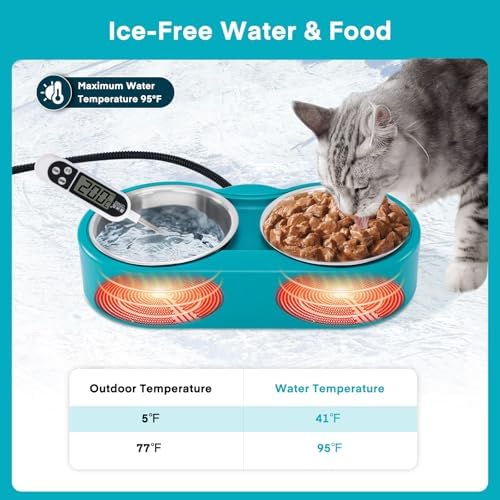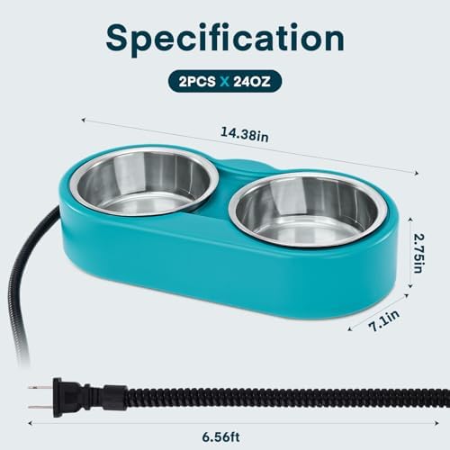 Total 48oz Capacity: Comes with 2pcs high-quality stainless steel bowl- which is removable from the heating element base making this electric water bowl easy to clean. 5.3 X 2.2inch/ 24oz capacity per bowl, the perfect size of this unique cat water bowl is suitable for most small and medium animal use