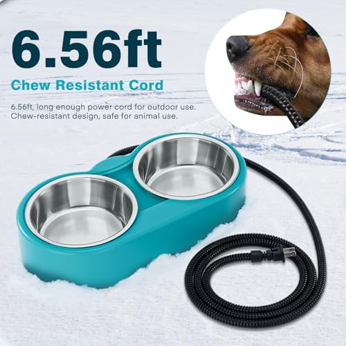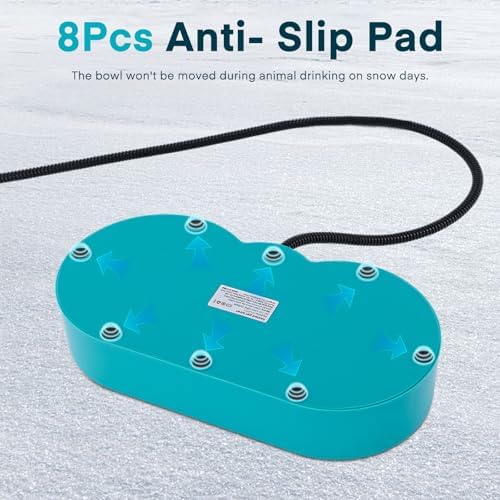 Waterproof And Safe: All the heating element is safely sealed inside the BPA-free plastic casing, this outside dog bowl is completely waterproof even on a snow/ rainy day. The 6.56ft abrasion-resistant power cord which is compatible with standard power outlets made this heated water trough safe to use, no worries about animals chewing on the cord