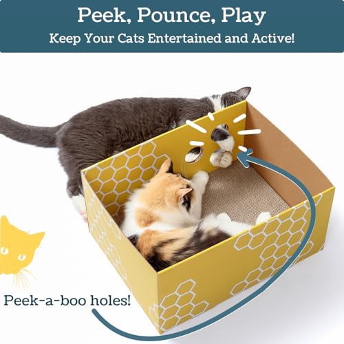 [PEEKABOO HOLES] Keep your cat engaged with the interactive design featuring a cat scratching box with strategically placed peekaboo holes on the sides. Watch as your curious cat pokes a paw through, or peeks out to observe their domain, adding an extra element of playfulness to its hide and seek adventures.